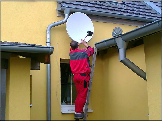 Montáž satelitu pro příjem programů společnosti Sky Link.